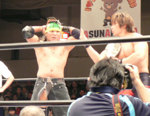 そこからカズが立て直し反撃、諏訪魔を追い込む。