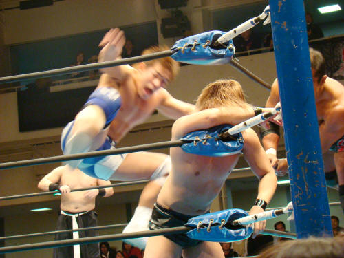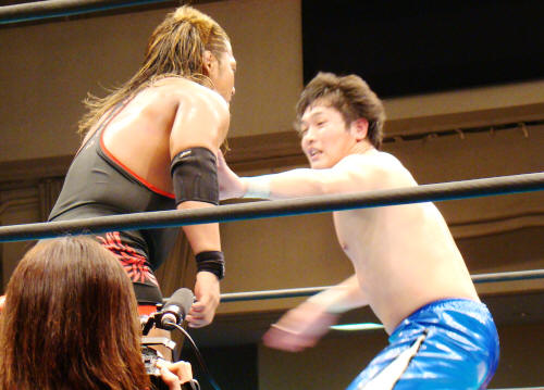 将人と義人の美しい背中♪セコンドの浪口が思いっきり邪魔(この子だけは邪険に扱うぞ)
