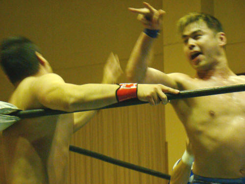 TAKA対円華からTAKA対筑前へ。TAKAぶちかましで負けエルボー効かず。